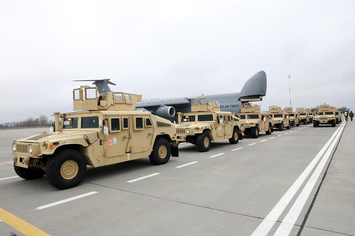Не успел транспортный С-5 "Galaxy" покинуть небо Украины и вернуться в родимую техащину, как его коллега сегодня уже приземлился с очередными подарками для ВСУ от ВС США - новой партией HMMWV, а проще говоря хаммеров. Груз лично встречал посол США в Украине - Джеффри Пайетт. Примеч ...