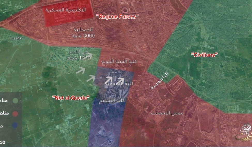 В районе 17 часов, боевики нанесли удар с территории артиллерийской академии и соприкоснулись с окруженцами в Алеппо в районе гаражей к северу от квартала Рамусех. Тем самым перерезана дорога через Рамусех и осложнилось положение войск обороняющих технический колледж на артиллерийской ...