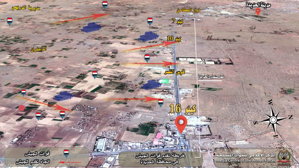 О 4-й попытке взять Ходейду. Потерпев неудачи в попытках взять Ходейду лобовым ударом (неоднократно "взятый" аэроопорт Ходейды так с июня и не взят), интервенты сменили пластинку и теперь ведут операции к юго-востоку от города, ограничиваясь бомбардировками Ходейды и ее окресностей, ...