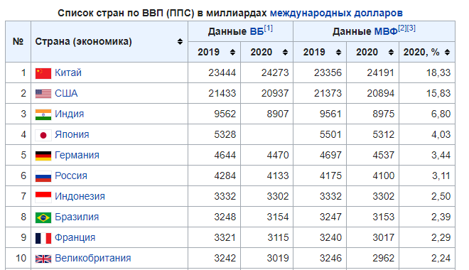 ВВП России в текущем году составляет 3,55% мирового по паритету покупательной способности, что позволяет стране обогнать Японию с 3,38% и занять четвертое место в мире по паритету покупательной способности (ППС). Это следует из доклада Международного валютного фонда (МВФ) по динамике ...