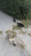 У Пудинга сгнили три зуба сбоку. Десна воспалилась. На щеке появилась опухоль – висела длинной колбаской. Прооперировали, удалили зубы, опухоль. Опухоль, кстати, хорошая – инкапсулирована, ножки нет, слава богу. Кот ходит мрачный со шрамом и торчащими нитками на бритой щеке. Воротник снял ...