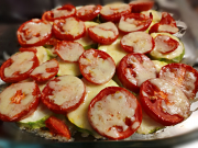 На скорую руку. Первый слой - тонко нарезанный картофель, далее кабачки, помидоры, сыр. Итальянские травы, чеснок. Очень вкусно! ...