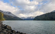 Цвета маловато, много лиственных кустарников все ещё зелёные, только редкие осинки разбавляют хвойную зелень. Ну и свежий снег укрыл ёлки и скалы начиная где-то с 1200 м, а озеро на 800 с хвостиком. Чем богаты... 1. хмурое небо к вечеру начало проясняться 2. сюда доходят ...