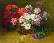 Цветочный натюрморт с лотосами в садовой вазе . Клара фон Сиверс (урождённая Крюгер) (немецкая художница) ...
