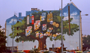 раз кафе итальянское, то и персонажи на панно - предположительно - итальянцы и самыми узнаваемыми, действительно, получились Софи Лорен и Адриано Челентано как абсолютно верно ответил Юра kvartirant : "Трое на первом плане - семья Карлеоне: Вито с женой и дочерью ...