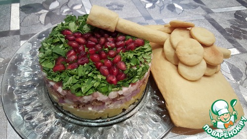 Ну, я вернулась. %) Давно не брал(а) я в руки шашки огнемёт... %) Поэтому пост получился жыыыыырный. Во всех смыслах. %) В сообществе побывало уже дохреналлион нямок, но я всё ещё способна удивиться, встретив странный ингредиент в солатеге. Как вот тут... Салат "Гости на пороге" ...