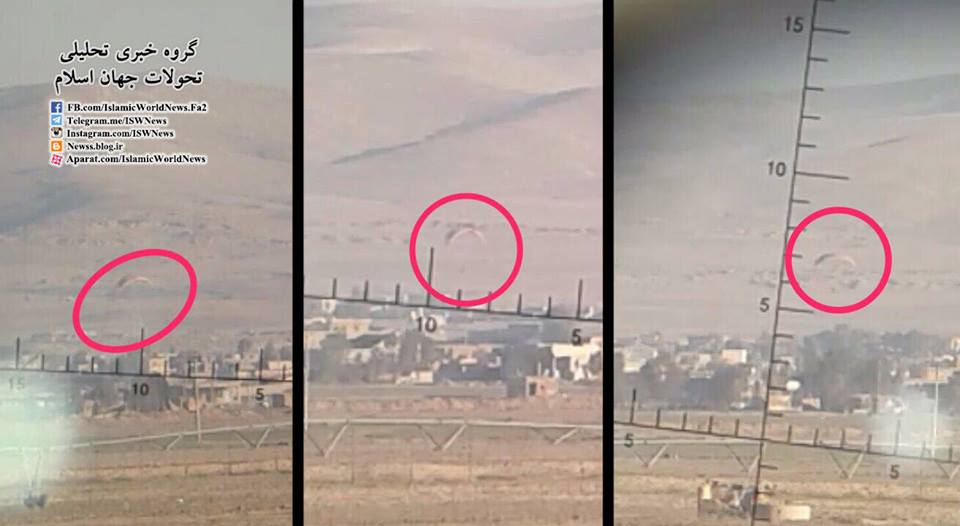 Примечательные фотографии из под иракского Таль-Афара. С позиций про-иранской шиитской милиции "Хашд-аш-Шааби" засняли сброс некоего груза (контейнер на парашюте) в поселок контролируемый Халифатом. Вопрос о том, кто по воздуху снабжает Халифат в Ираке, доволен интересен, тем более что ...