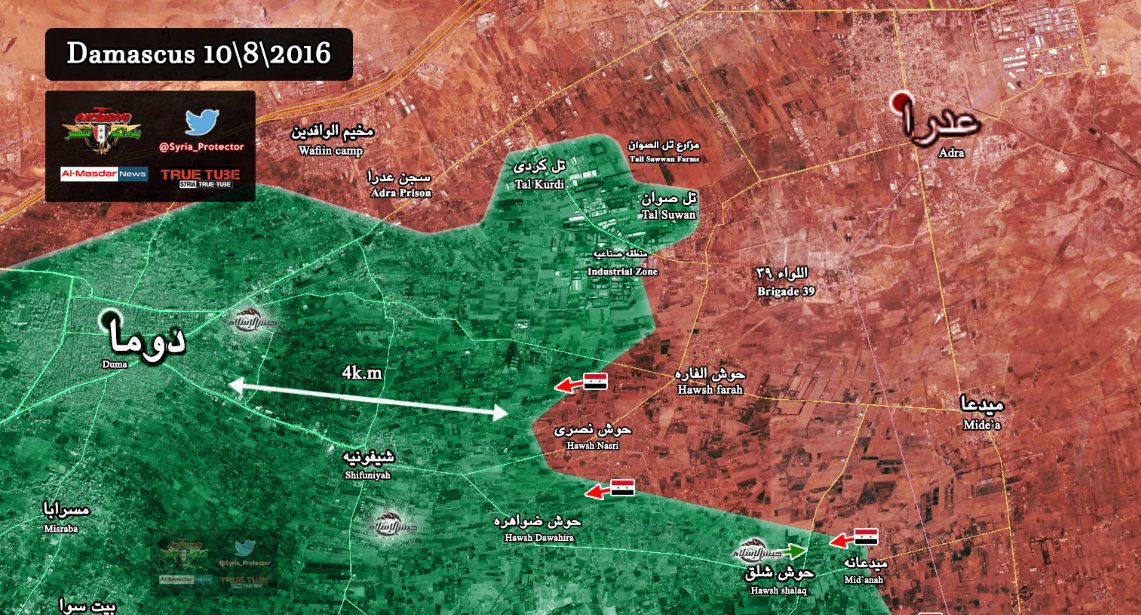 Для лучшего понимания ситуации в районе ключевой развязки у Рамусеха. Вид со стороны САА. Пехота САА концентрируются к северу от развязки и готовится к атаке. Вид со стороны боевиков. Обратите внимание - боевики занимают оборону чуть южнее комплекса гарожей. ...