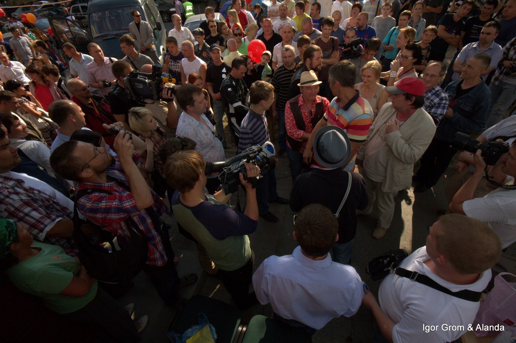 Ух, как сильно получилось! Люди шли и шли. Даже троллейбусы останавливались. Раздали больше пяти тысяч наклеек. Подъезжали и приходили представители многих организаций и сообществ. Пришел знаменитый Миша Брусиловский вместе Воловичем и ...
