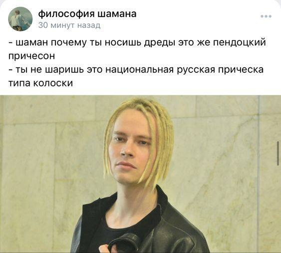 Они его высмеивают не только за микрофон в штанах. Современная молодежь ищет противоречия, они видят какой Ярослав Дронов и веселятся. Молодежь не относится к проекту "Шаман" серьезно. Сейчас мем — это анекдот в картинке. Это народное творчество. Мемы указывают на все проблемные ...