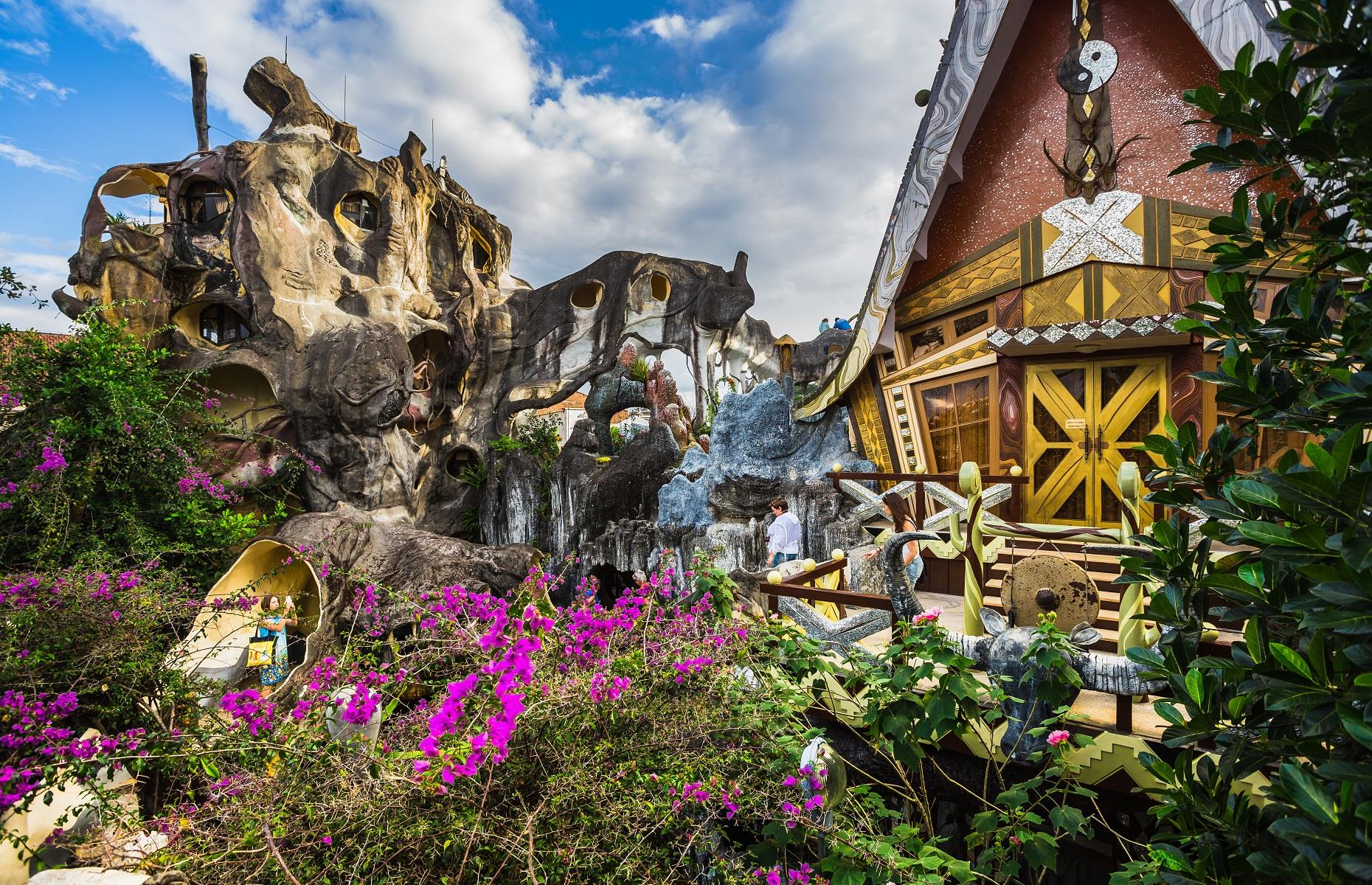 Хотя, конечно, кто-то при виде этих домов только презрительно скривится. И я могу их понять - не всем по вкусу такое, как, скажем,дом под названием"Луна парк" в Нью ДЖерси Любители фольклорно-вырвиглазного стиля есть и в других местах - скажем, во Вьетнаме - это т.наз Крейзи хауз Ханг ...