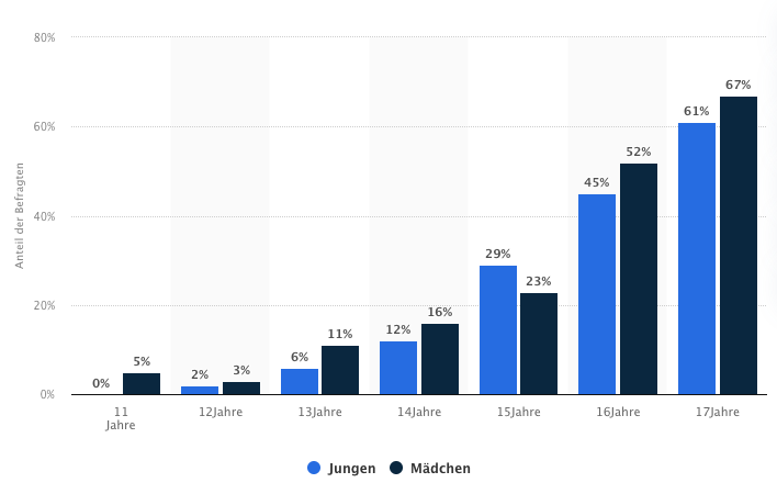 доли мальчиков и девочек с секс-опытом по возрастам с 11 лет девочки чаще вступают в половую связь. каждая двадцатая девочка 11 лет и каждая шестая девочка 14 лет имели половую связь. многие девочки со школы торгуют ...