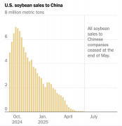 Продажи сои из США в Китай упали до нуля. США продавали половину своей сои в Китай. Куда теперь они её денут? Китай покупает теперь сою в БРИКС. Бразилия, ...
