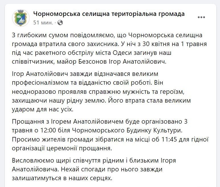 Украинцы опубликовали первый некролог после удара в Одессе. Выживших после прилёта по штабу оперативного командования "Юг" ВСУ не нашли. После атаки источник проекта lpr 1 сообщал, что штаб "разбит наглухо". На днях стало известно о мощном налёте на Одессу. Под ударом оказался ...