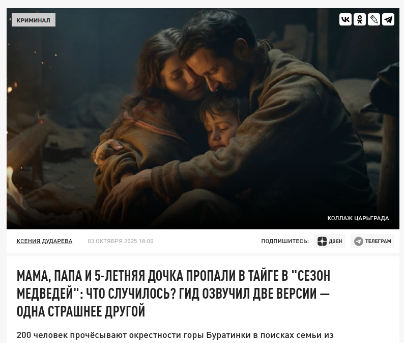 Коллаж Царьграда "Слышали женский стон и лай собаки": Как спасатели подбираются к семье Усольцевых Уже вторую неделю в тайге Красноярского края разыскивают пару с маленьким ...