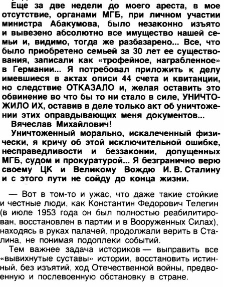 25 апреля 1946 года в 20.00 со станции Берлин в Москву отбыл литерный поезд, состоящий из 10 платформ и вагонов с имуществом Телегина К. Ф. В составе эшелона были: 5 платформ с 8 легковыми автомобилями, одна платформа с запасными частями и моторами к автомашинам, один крытый вагон с ...