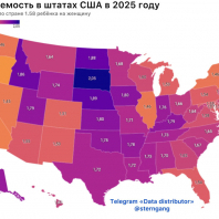 Рождаемость в Штатах США по итогам 2025: от 1.07 до 2.05, чёткий паттерн связи